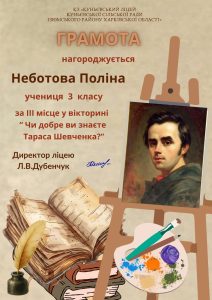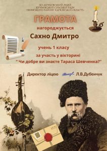 9 березня в Україні та світі відзначають день народження Тараса Григоровича Шевченка (1814–1861) — великого українського поета, художника, мислителя та національного пророка, який народився 9 березня 1814 року в с. Моринці на Черкащині. Ця дата є символом української незламності, культури та боротьби за свободу. Педагоги та учні нашого ліцею прийняли активну участь у заходах, присвячених великому Кобзареві. Години спілкування, перегляд та обговорення відео, вікторини та участь у фестивалі – заходи, які запам’ятаються нашим вихованцям.